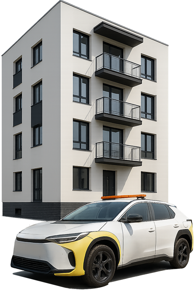 Regelmäßige Kontrollfahrten und flexible Streifengänge zur Absicherung großer oder mehrerer Standorte.